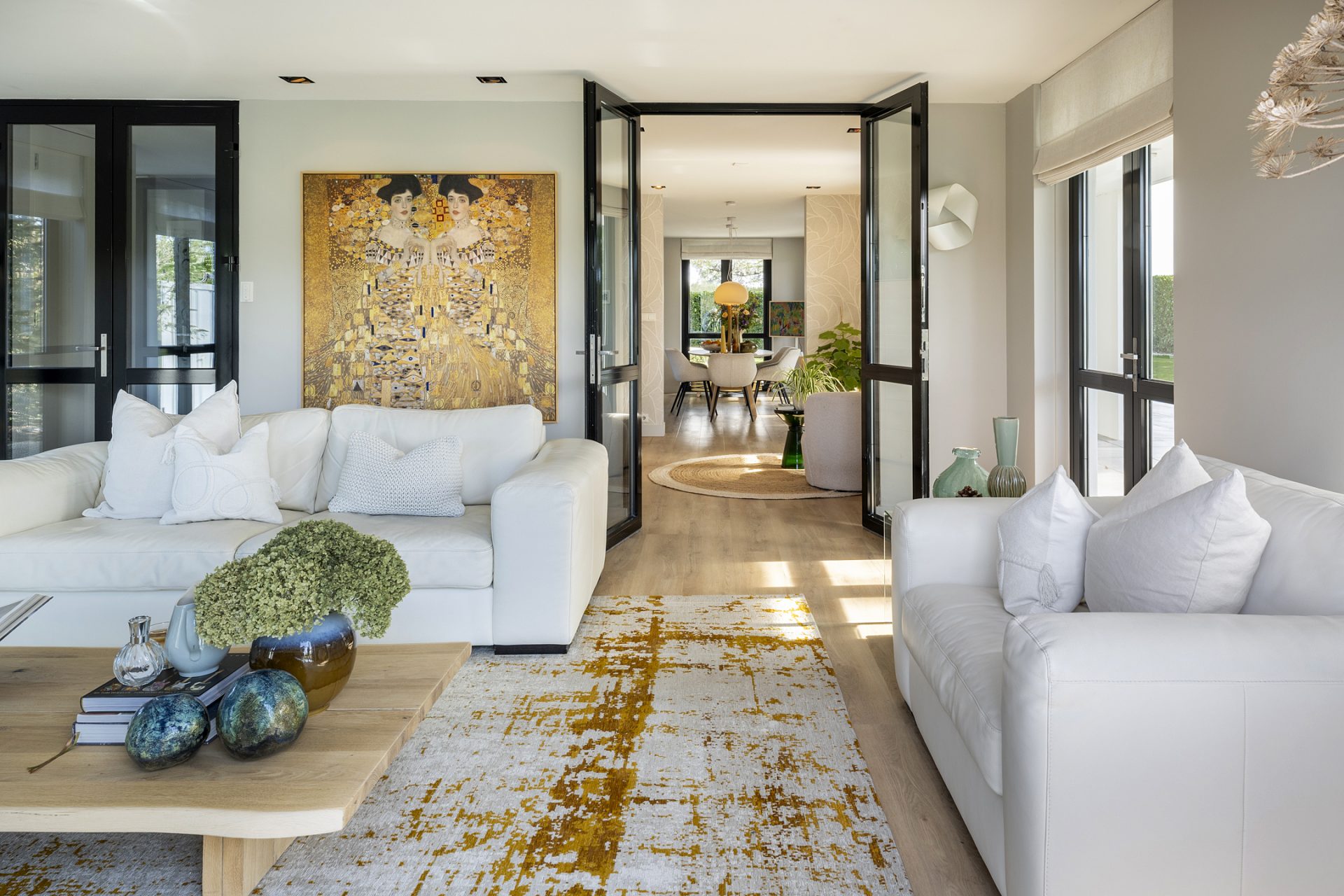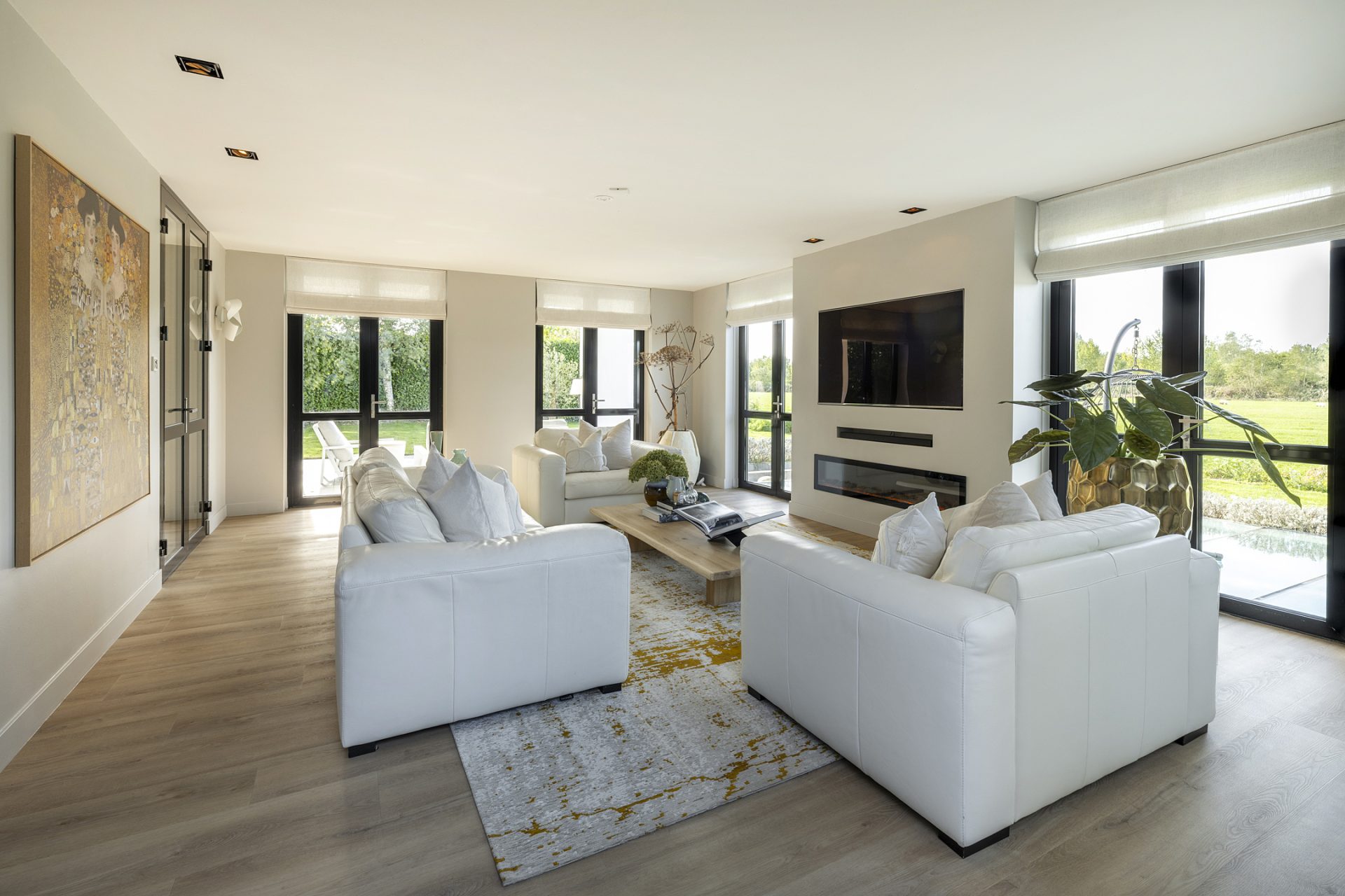 De woning is in 2001 met oog voor detail gebouwd, ontworpen door Jan des Bouvrie en geïnspireerd op de stijl van een klassiek Frans landhuis. Dankzij de vele ramen en openslaande deuren baadt de woning in het zonlicht en lopen binnen en buiten naadloos in elkaar over. De ruimtes staan prachtig met elkaar in verbinding, waardoor het een heerlijk huis is om met het gezin te wonen. De villa is volledig geïsoleerd en voorzien van vloerverwarming op alle verdiepingen. Het ontwerp is strak, tijdloos en doordacht. Vanuit zowel de sfeervolle living als de tuin heeft u een schitterend vrij uitzicht over de aangrenzende weilanden – waar regelmatig koeien en schapen voorbijkomen. In het souterrain bevindt zich een luxe wellnessruimte met sauna, jacuzzi en twee douches, en daarnaast een fijne werkruimte of kantoor aan huis. Op de bovenverdiepingen vindt u vijf royale slaapkamers, twee badkamers en een werkkamer. Dit alles op een indrukwekkend perceel van 1.768 m² – ruimte en rust gegarandeerd!