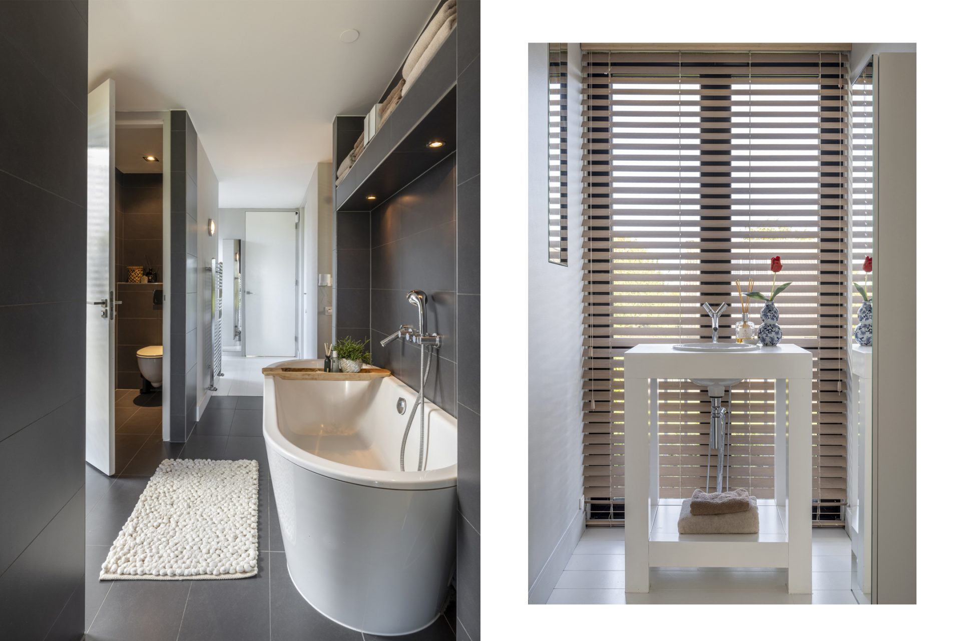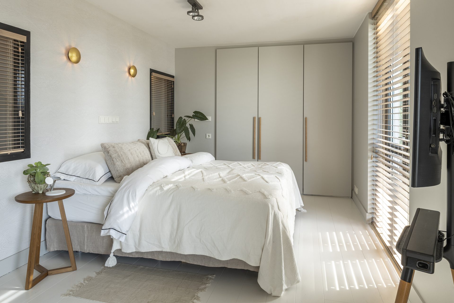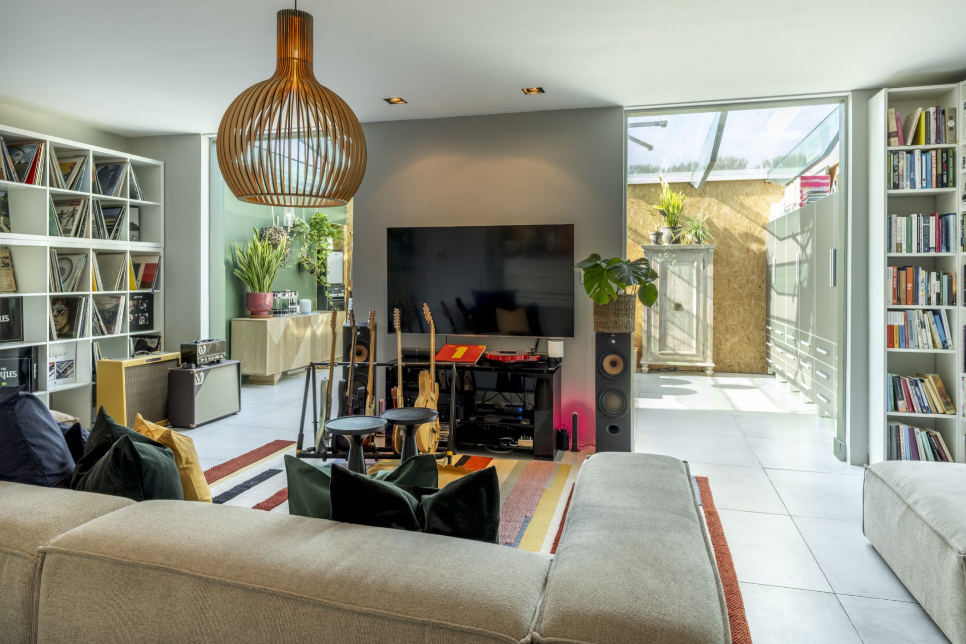 Op de tweede verdieping vindt u een ruime overloop met wastafelmeubel, een badkamer met inloopdouche, een werkkamer met toegang tot dakterras en een royale slaapkamer met een eigen dakterras. De ruimtes zijn in open verbinding, maar eenvoudig af te sluiten indien gewenst. Ook bevinden zich hier inbouwkasten met de cv-opstelling.