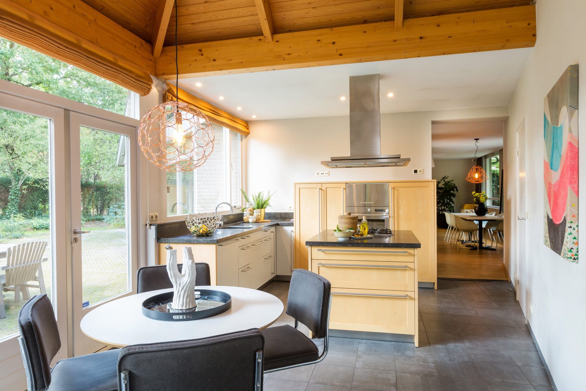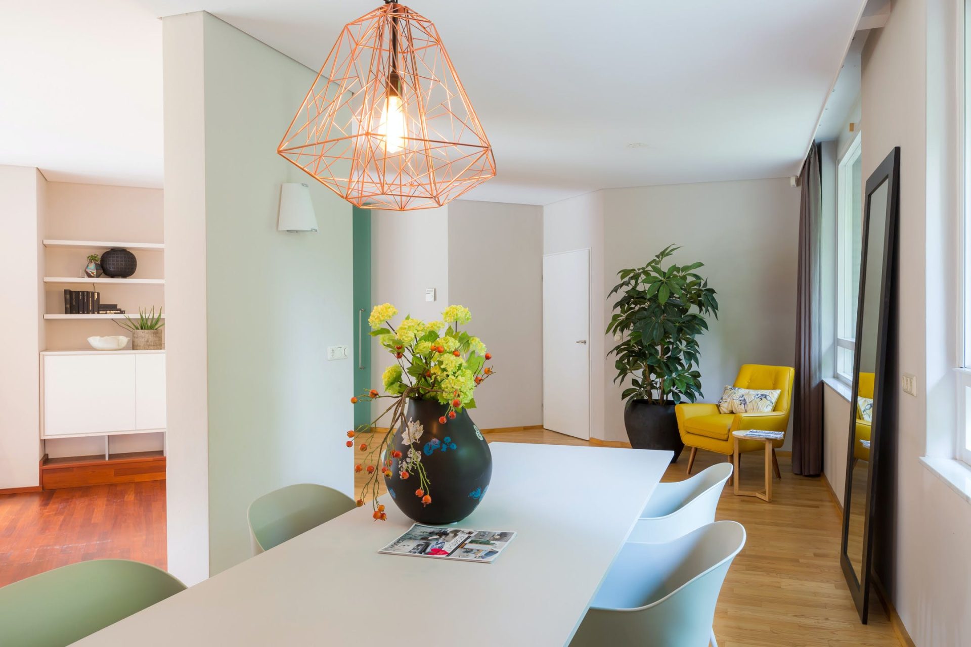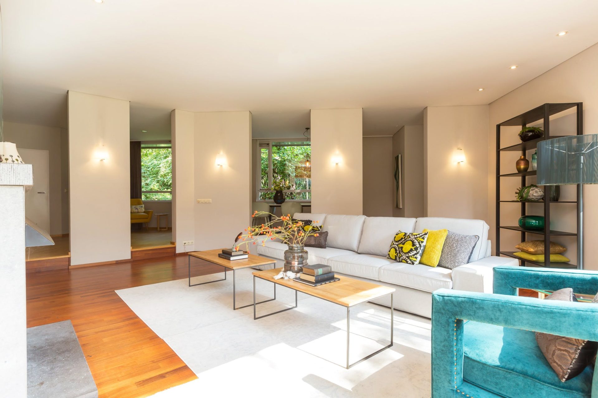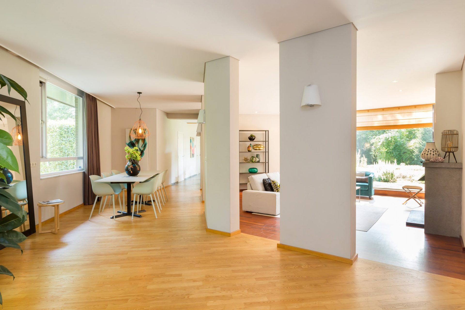 • Speelse living verdeeld in meerdere vertrekken zoals een zitgedeelte en een eetgedeelte;