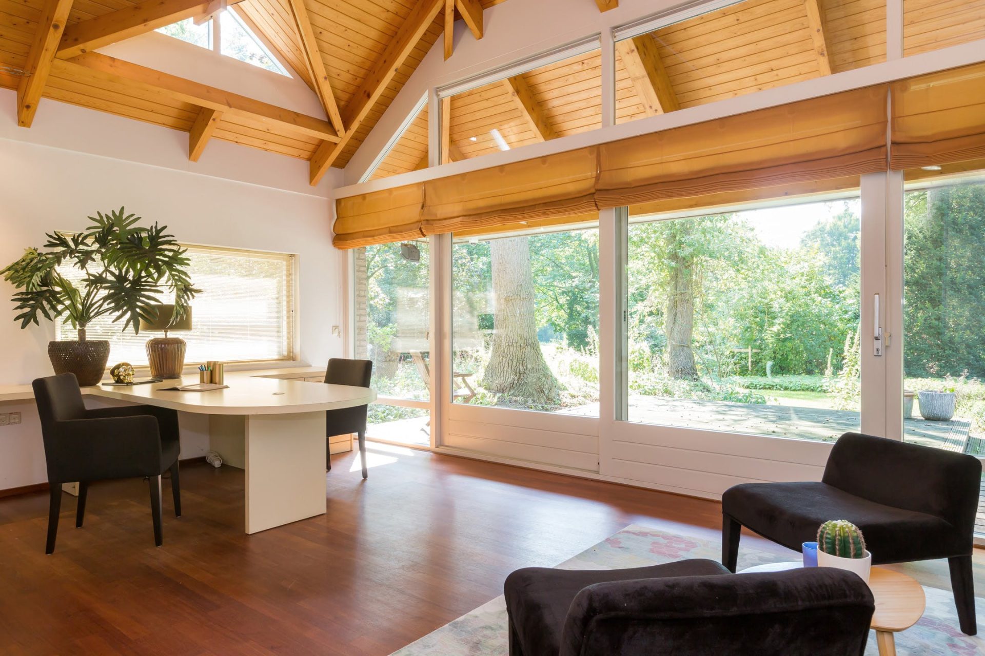 • Vanuit de keuken toegang tot de kantoorruimte/televisiekamer, door middel van openslaande deuren komt u op het overdekt terras;