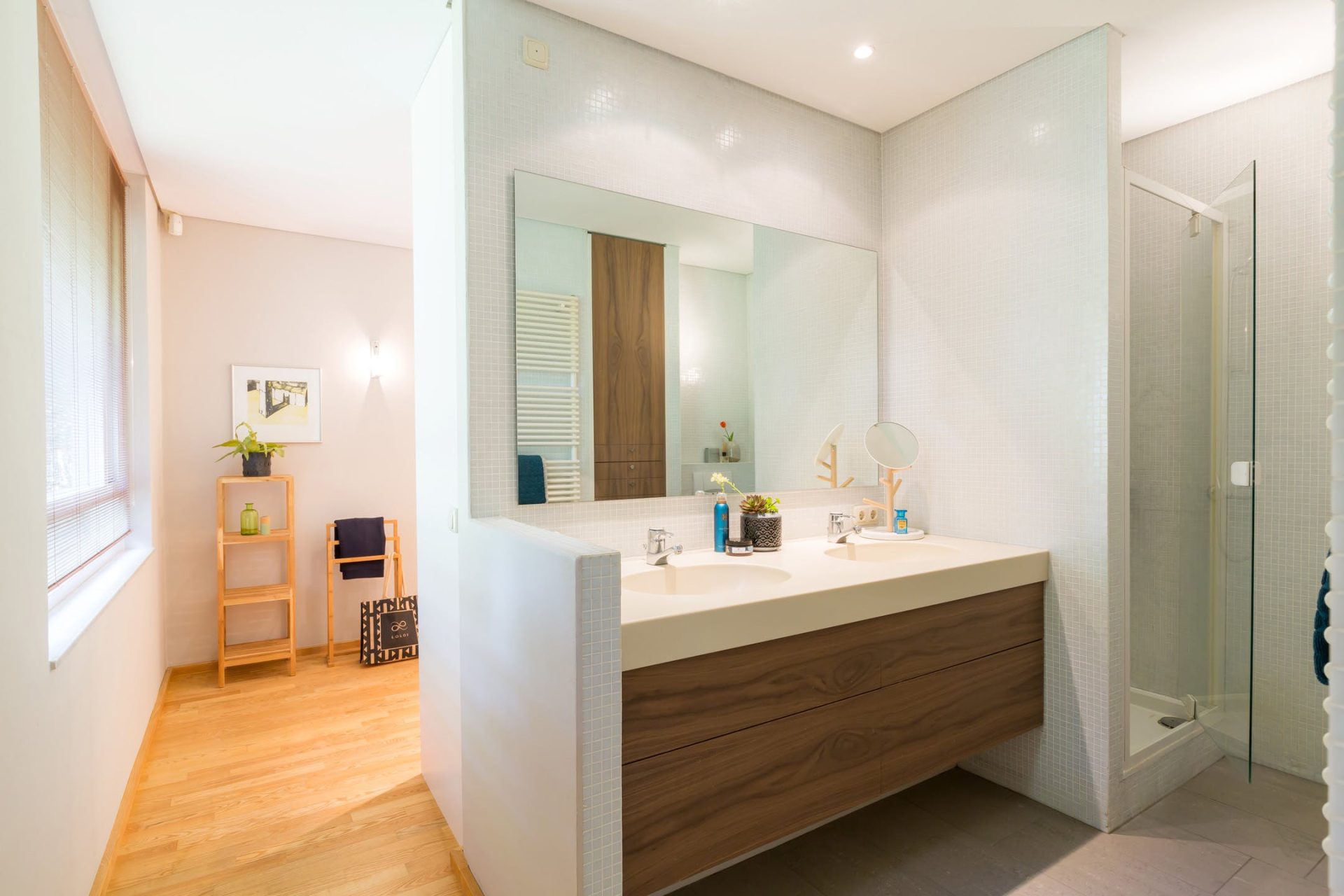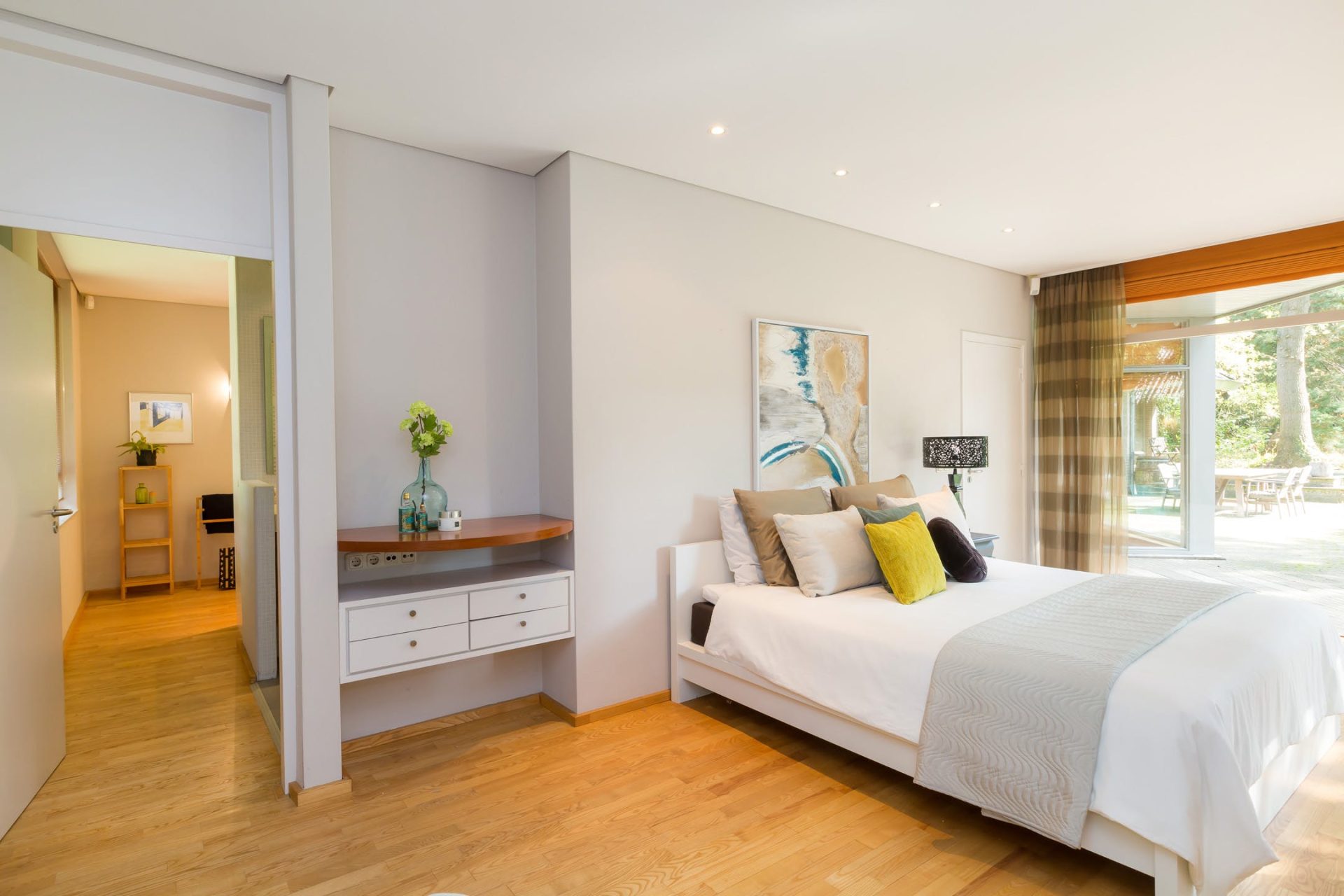 • Masterbedroom aansluitend een eigen badkamer v.v. douche, dubbele wastafel en toilet. Tevens een dressingroom voorzien van schuifinbouwkasten.